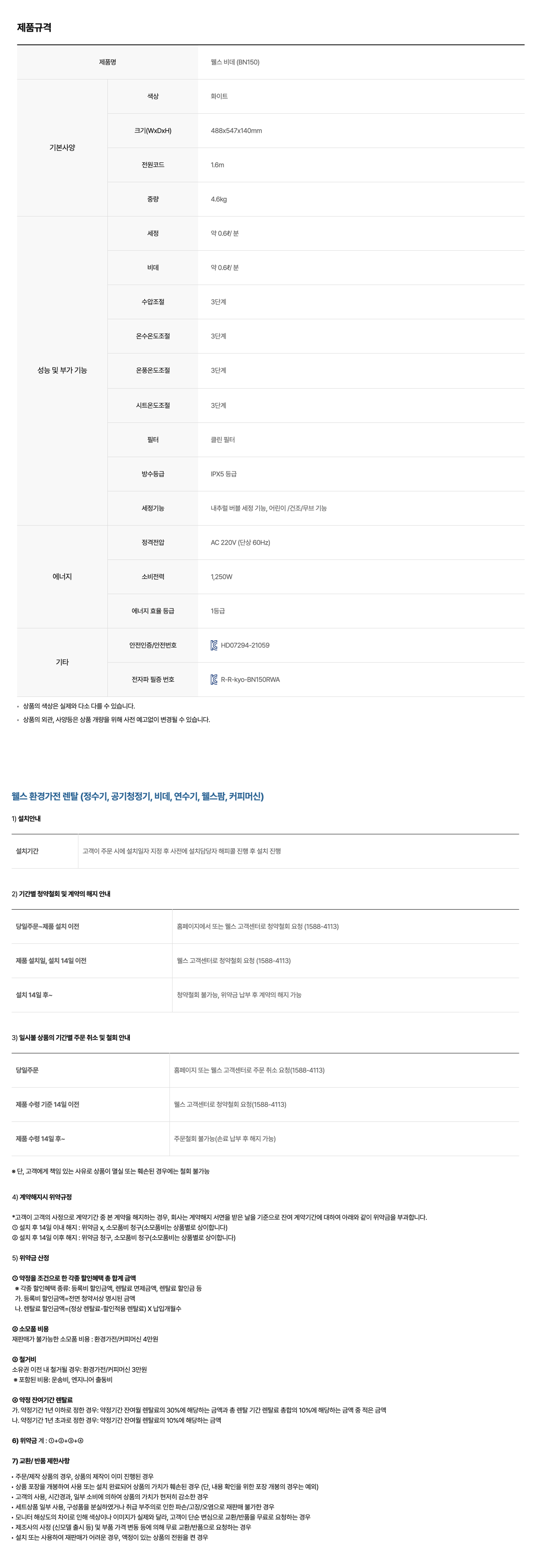 | A/S 기간 | 렌탈기간 내 |